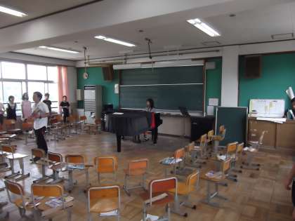 音楽の時間に歌「つばさをください」の歌練習をしています。きれいな歌声が,校舎に響いていました。