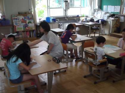 2校時に,それぞれ漢字・ひらがな練習をしたり,図画工作をしたりしていました。