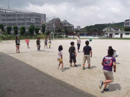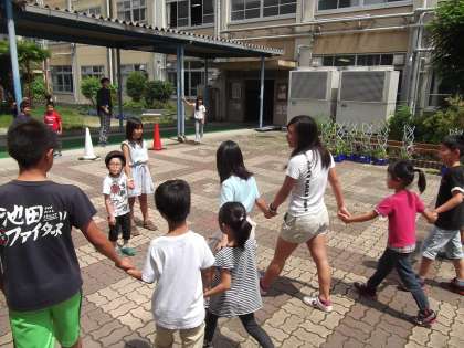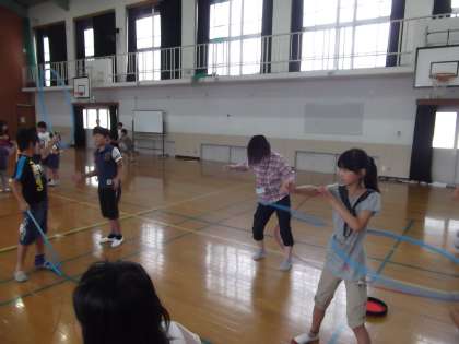 今日の中間休みは,たてわり班で遊ぶ日です。中庭,運動場,体育館等の場所で,「だるまさんがころんだ」「ゴムとび」「フラフープ」「ビンゴゲーム」などをして遊んでいました。