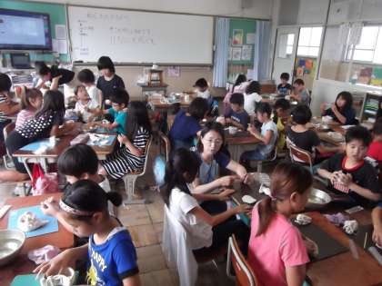 図画工作の時間に,粘土を使って子ども達の思い思いの作品を作っていました。