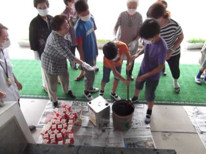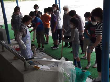 今日は,委員会の日です。それぞれの委員会で一生懸命に活動しています。写真は,環境委員会が,女性会の方々のご指導のもと廃油で石鹸を作っていました。