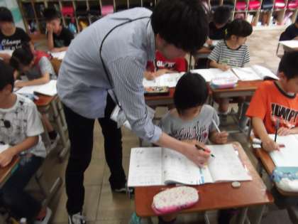 3年2組では,算数の学習をしていました。今日は,たし算の筆算の練習問題をしていました。