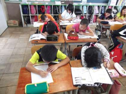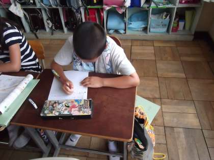 理科の時間に「空気と水」を学習していました。今日は,学習のまとめとしてレポートを書いていました。