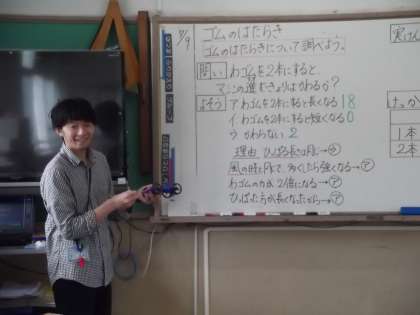 理科の時間に「ゴムのはたらき」を学習しています。今日は,ゴムのはたらきについて調べていました。