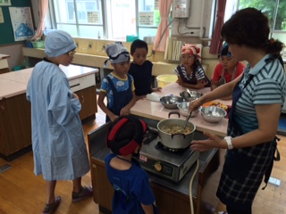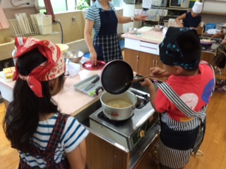 今日は、2時間目から畑でとれた野菜を使ってカレー作りをしました。