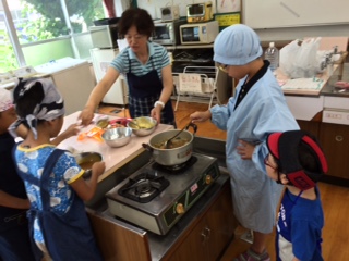 野菜の皮をむく、切る、炒める、煮込む作業をみんなで協力して行い、おいしいカレーができました。