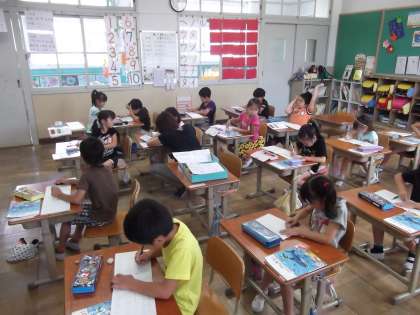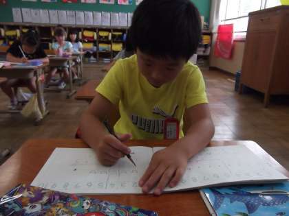 算数の時間に「ひき算」を学習しています。今日は,ひき算の問題を絵や式に表していました。