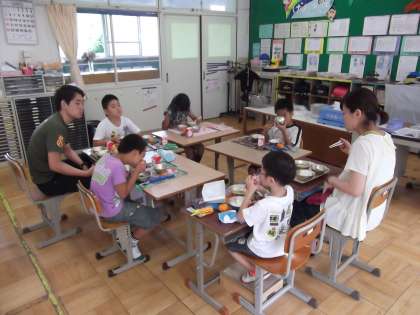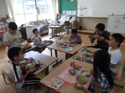 今日の給食にカレーうどんがでました。みんな大喜びで給食を食べていました。