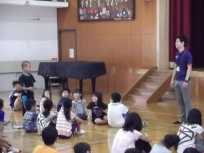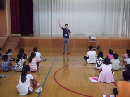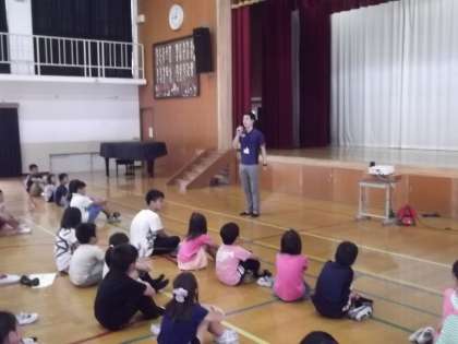先生による1分間スピーチ。今日は,3くみ担任の長谷川先生が,「夢」をもつことの大切さや実現のために努力する大切さについて語っていだだきました。