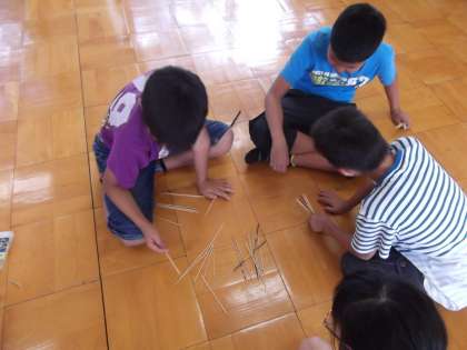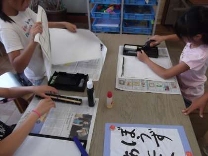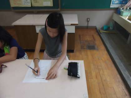 今日は,クラブの日です。写真は,家庭科クラブで前回の調理実習のふり返りをしていました。写真(上)書写クラブでは,作品づくりをしていました。(写真中)伝統文化クラブでは,中国の遊びをしていました。(写真下)