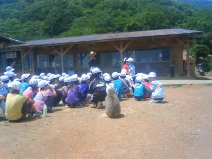 3年 嵐山〜モンキーパークに到着 気持ちいいです。130匹の猿がいて,みんな名前がついています。