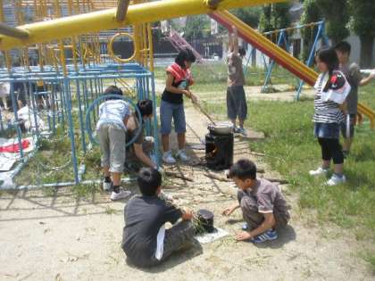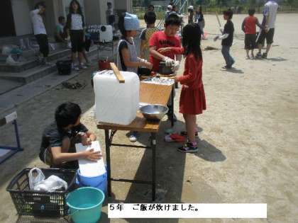 5年 野外炊事 どの班もうまくできました。いまからいただきまーす!