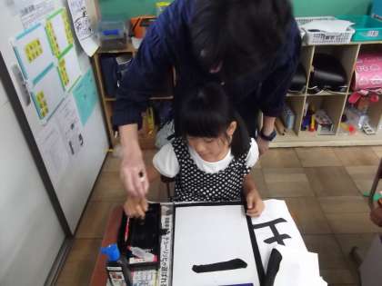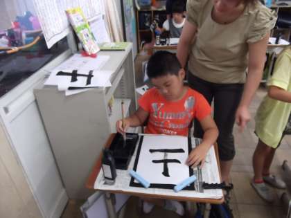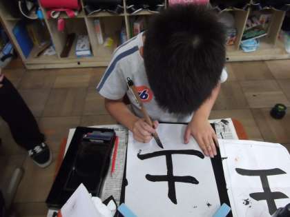 国語の時間に「書写」を学習していました。「縦画」の筆使いに気をつけながら丁寧に文字を書いていました。