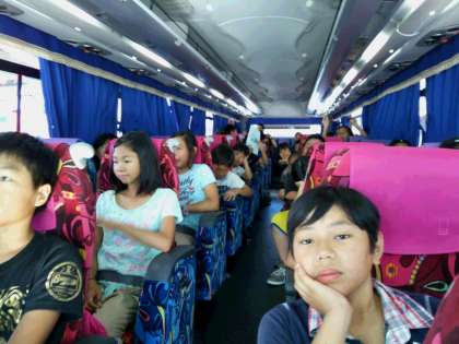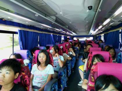バスの中でビデオを見てリラックスしています。