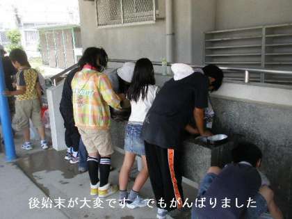 14時30分,すべて予定通り終了しました。暑い中,最後までがんばり通しました。9月の5泊6日の「長期宿泊・自然体験学習」の予行演習は一応合格です。