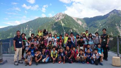 中部山岳国立公園での集合写真です。みんな元気です。現地は,とても良い天気です。