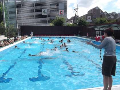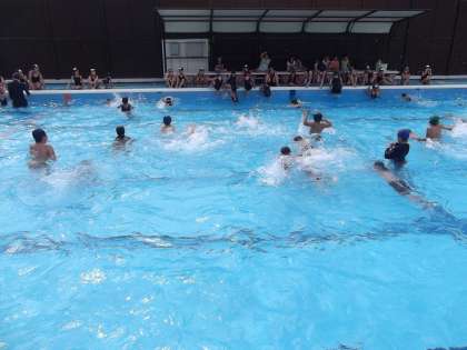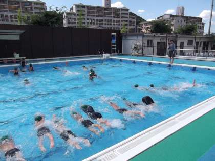 体育の時間に「水泳学習」を行っています。今日は,けのび,ばた足の練習を中心に泳法練習をしていました。
