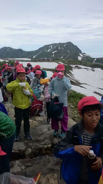まず,初めの休憩場所「一の越」に到着しました。子ども達は,元気です。毎朝のランニングの成果が出ています。
