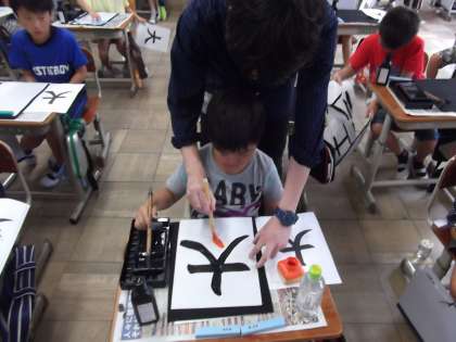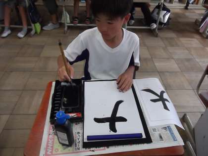国語の時間に書写をしていました。今日は,「大」の字を練習していました。丁寧に字を書いていました。