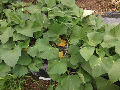 台風が近づいています。そのため,風が少し強いです。しかし,里むすめは,台風の風にも負けないぐらいしっかりと根がはっています。