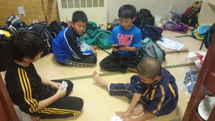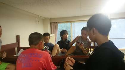 最後の夜です。男子はトランプ大会、女子は2日間の思い出を語り合うなど、自由な時間を楽しんでいます。