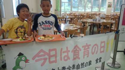 最後のごはんタイムです。今日は,年に数回しかない自然の家の食育の日です。富山の特産品を使ったごちそうメニューだそうです。ラッキーです!