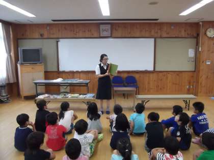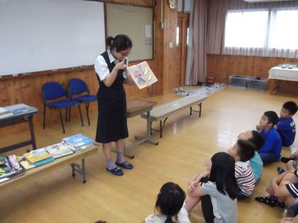 子ども達が,興味をもてそうな本を醍醐中央図書館の方に読み聞かせをしていただきました。