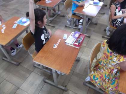 算数の時間に「ひき算」を学習していました。今日は,数図ブロックを使って問題を解いていました。
