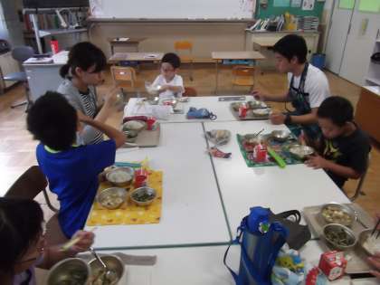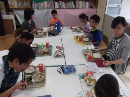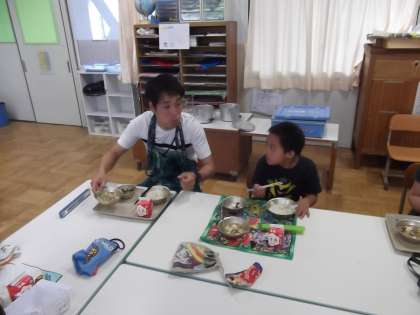 写真は,給食の様子です。みんな楽しそうに給食を食べていました。