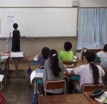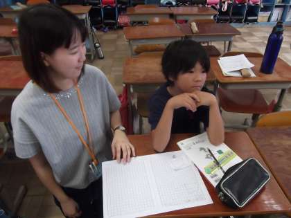 算数の時間に「合同な図形」を学習しています。今日は,合同な四角形を書く練習をしていました。