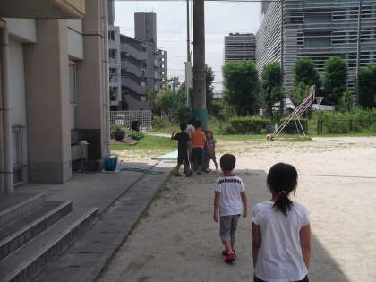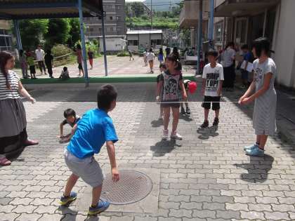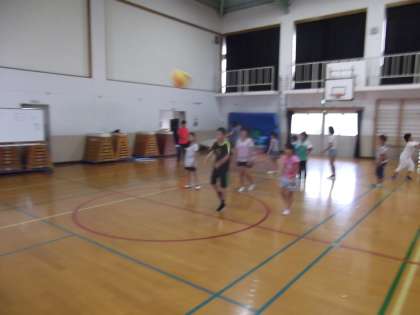 中間休みにダイヤ遊びがありました。運動場,体育館,多目的室等で,ソフトバレー,ふえおに,ゴムとびなどの遊びをたてわりグループで楽しく遊んでいました