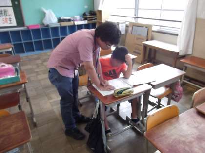 写真は,5年生の学習会の日です。夏休みの宿題で分からないところを先生に教えてもらいながら学習を進めていました。