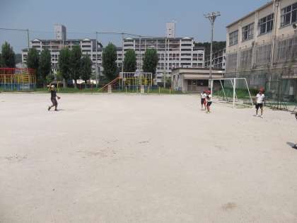 この暑さに負けず元気に声を出して練習に励んでいます。がんばれ!