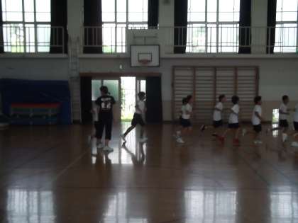 今月6日に全市部活動交流会バスケットボール部が行われます。その大会に向けての最終調整をしています。今日は,卒業生も教えに来てくれました。