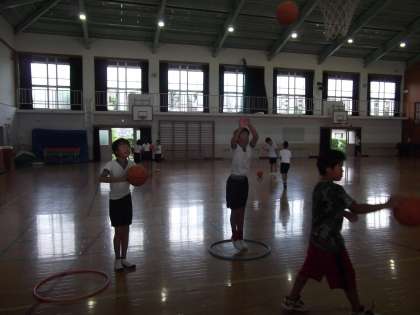 バスケ部は、明日の全市交流会に備えて最後の練習に励んでいます。