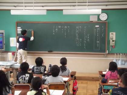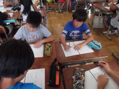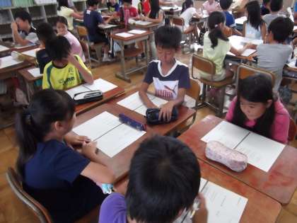 国語の時間に「詩」について学習しています。今日は,グループで「詩」を工夫して読むにはどうすればよいか話し合っていました。