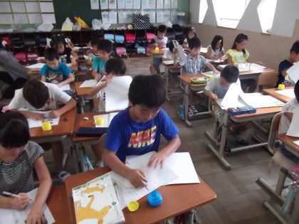 写真の様子は,国語の時間にワークシート作りをしています。