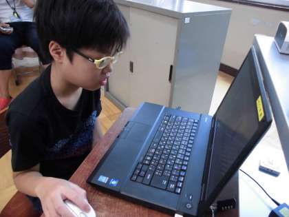 算数の時間にコンピュータを使って算数パズルをしていました。