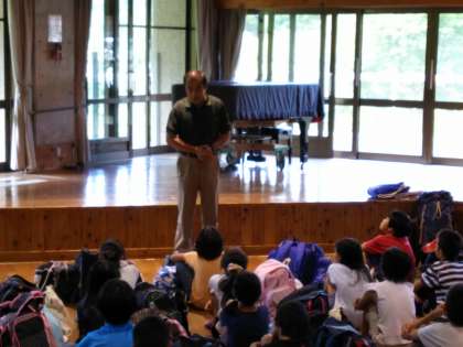 懐かしい安藤前校長より,施設の説明がありました。