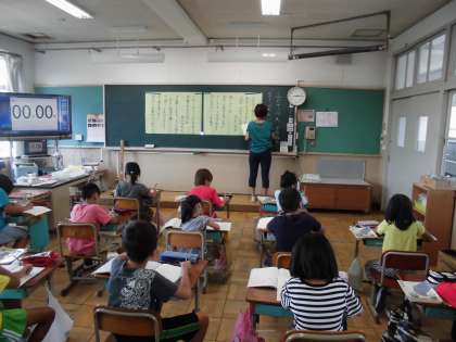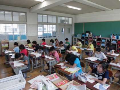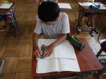 国語の時間に「山のてっぺん」を学習しています。今日は,「山のてっぺん」に出てくるすてきな言葉見つけをしていました。