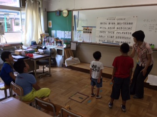 中間休みには、運動場でみんなでかくれんぼをして汗を流し、算数の時間には、夏休みの宿題の直しや課題プリントに取り組みました。