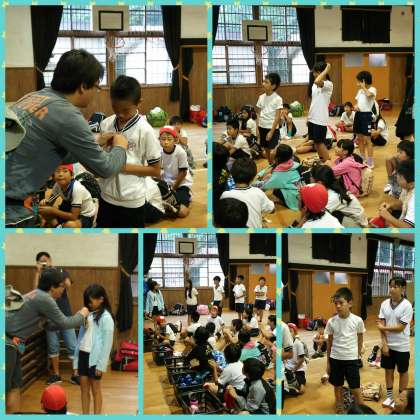朝の集いの様子です。朝の会で表彰式がありました。昨日の雨で中断された夕食の片付けを積極的にした班などがメダルをもらいました。