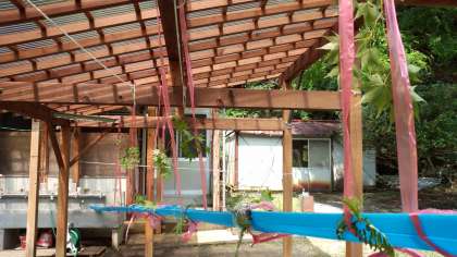 一方、旧八桝小学校では、流しそうめんの準備を、進めています!