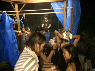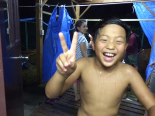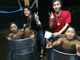 写真は,昨日(29日)のドラム缶風呂の様子です。みんな気持ち良さそうです。