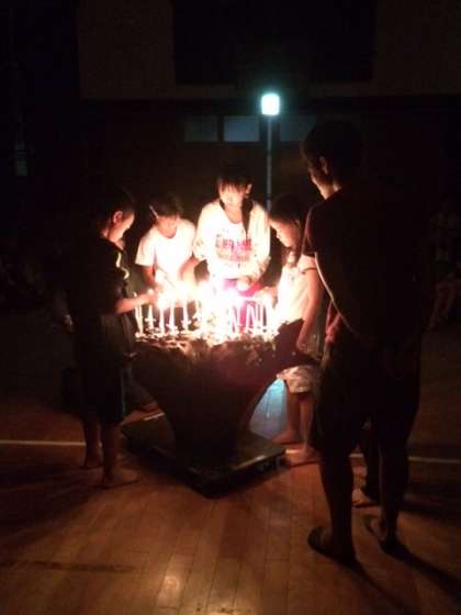 昨日のキャンドルファイヤーの様子です。仲良くなってきた学生さんたちがみんなを笑顔にしてくれました!楽しんでます!