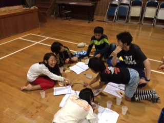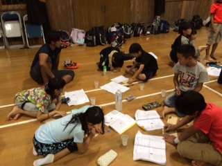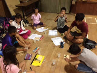 昨日(29日)のミーティングの様子です。1日の活動のふり返りをしています。