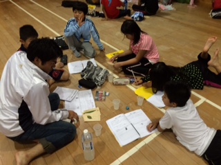 昨日(29日)のミーティングの様子です。4日目(30日)の活動の確認をしています。