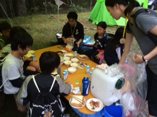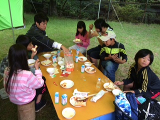 朝食が出来上がりました。全班美味しい朝食が出来たようです。いただきます。