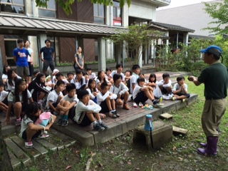 山の家に帰ってきました。まもなく魚つかみ大会をします。捕まえた魚は,今晩のおかずです。