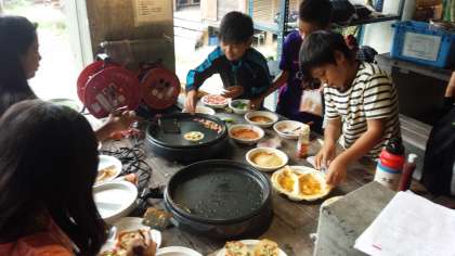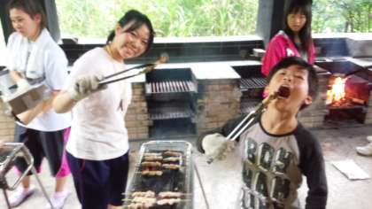 野外パーティーの準備が進んでいます。料理が出来るまでもう少しです。